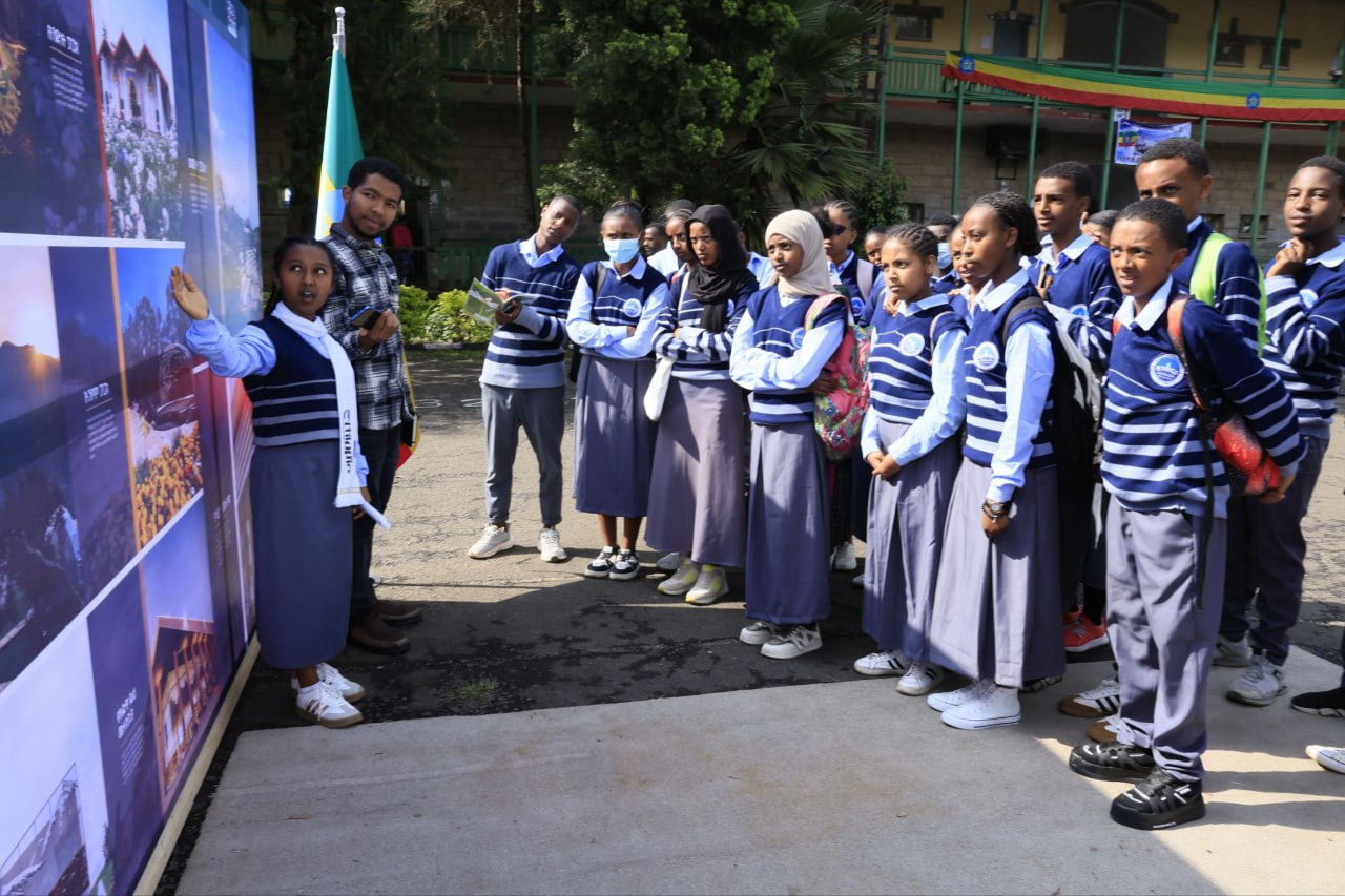 (መስከረም 15/2018 ዓ.ም) በኤግዚቢሽኑ ማስጀመሪያ መርሀ ግብር ላይ የቱሪዝም ሚኒስትር ክብርት ሰላማዊት ካሳ ፣ የአዲስ አበባ ከተማ አስተዳደር ትምህርት ቢሮ ሀላፊ ክቡር ዶ/ር ዘላለም ሙላቱ ፣ የአዲስ አበባ ከተማ አስተዳደር ትምህርት ቢሮ መኔጅመንት አባላት ፣ ተማሪዎች ፣ መምህራንና ርዕሳነ መምህራን ተሳትፈዋል፡፡